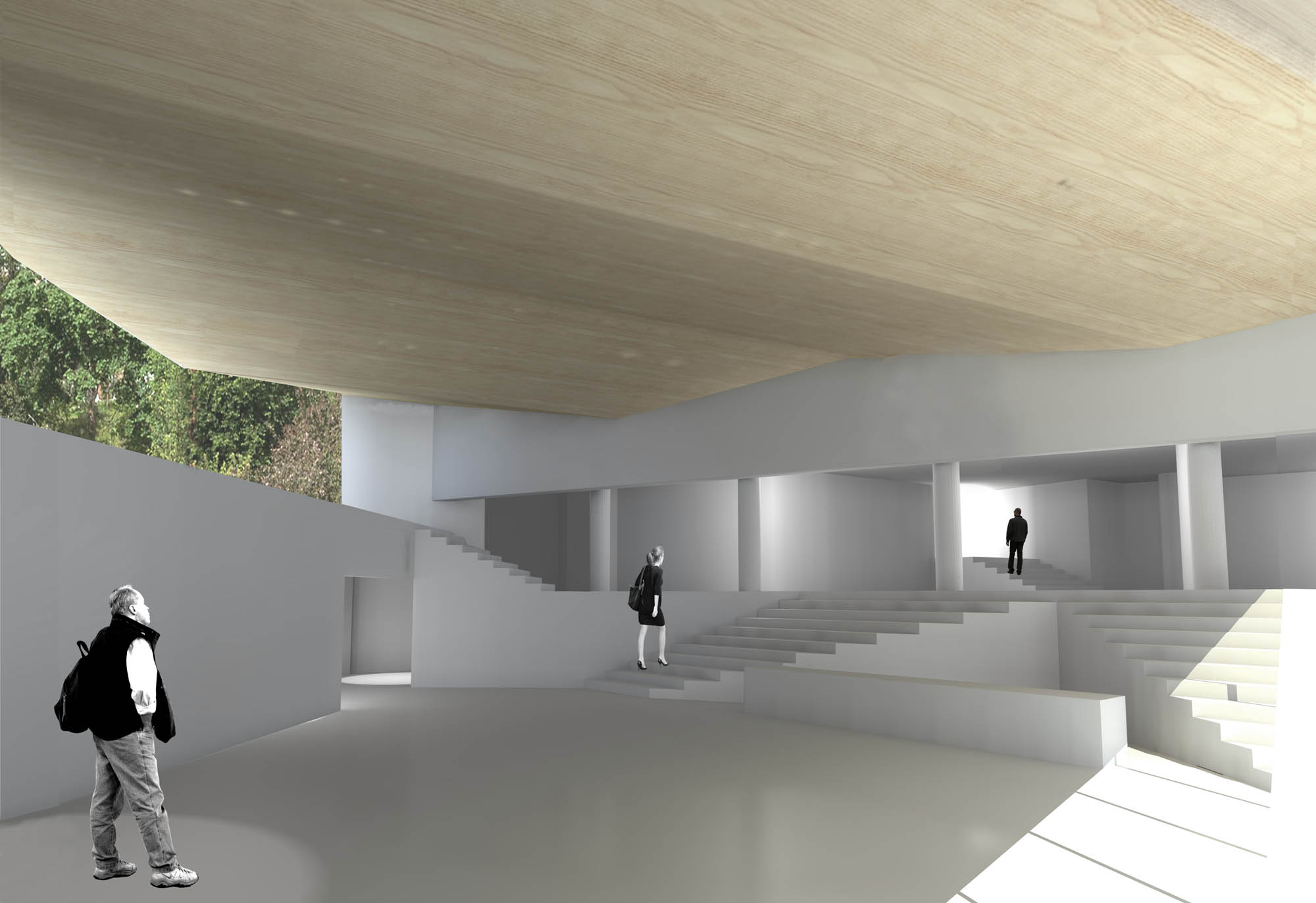 - The extension is a pavilion-like connector that does not replicate the forms of the existing buildings, but offers a contemporary interpretation of Aalto's architecture, emphasizing the essential symbiotic relationship between the building and nature, as well as the interior space as a metaphor for the landscape. The folded green roof blends the building into the sloping landscape and allows the two-story mass to be integrated into the site in a way that does not appear overly dominant or massive in its surroundings. The aim has also been to connect the museum more closely to the surrounding pathways and to improve the functionality of the area behind the buildings, making the building more accessible from the northwest and the university. The proposal was made by Sami Vikström Architecture Ltd.