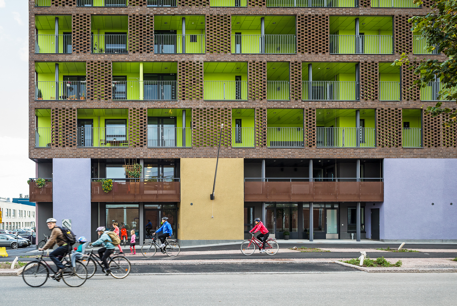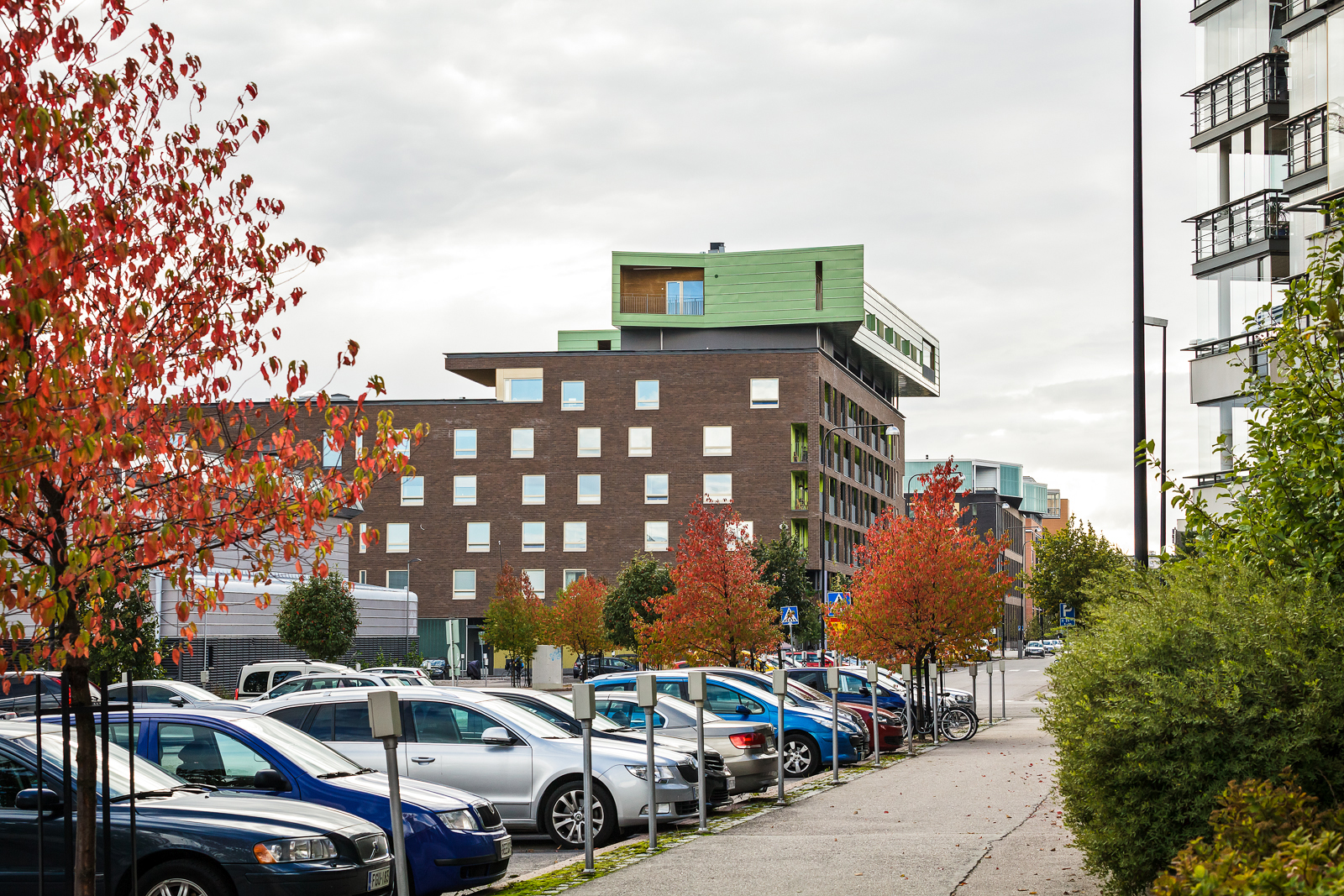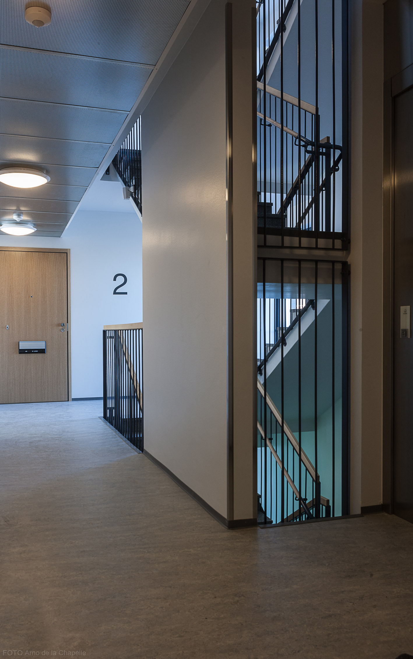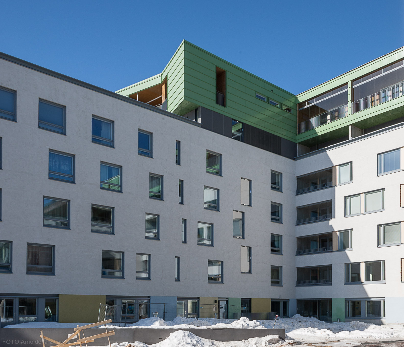 - Ehdotus ei voittanut ko. kilpailua, mutta palkintolautakunta esitti toiveen suunnitelman toteuttamisesta muulle alueen tonteista. Rakennus on kaksiportainen 5 – 8 -kerroksinen sivukäytävä- ja lamellitalo. Lisäksi sivukäytävään liittyy hissillinen, palomääräysten edellyttämä poistumistieporras.