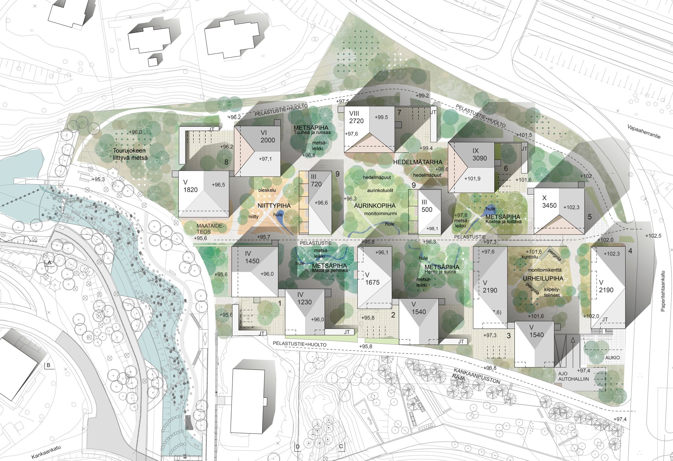 ARK-house- arkkitehdit Oy:n ja Arkkitehtitoimisto Sami Vikström Oy:n yhteistyönä vuonna 2022 laadittu kilpailuehdotus palkittiin lunastuksella. Maisema-arkkitehtuurista vastasi Aino Landscaping Oy. Suunnitelman ydinajatuksina on siinä esitetty rikas pihatilojen sarja sekä monipuolinen, kerrostalomaista ja pientalomaista asumista sekoittava talotyypistö.