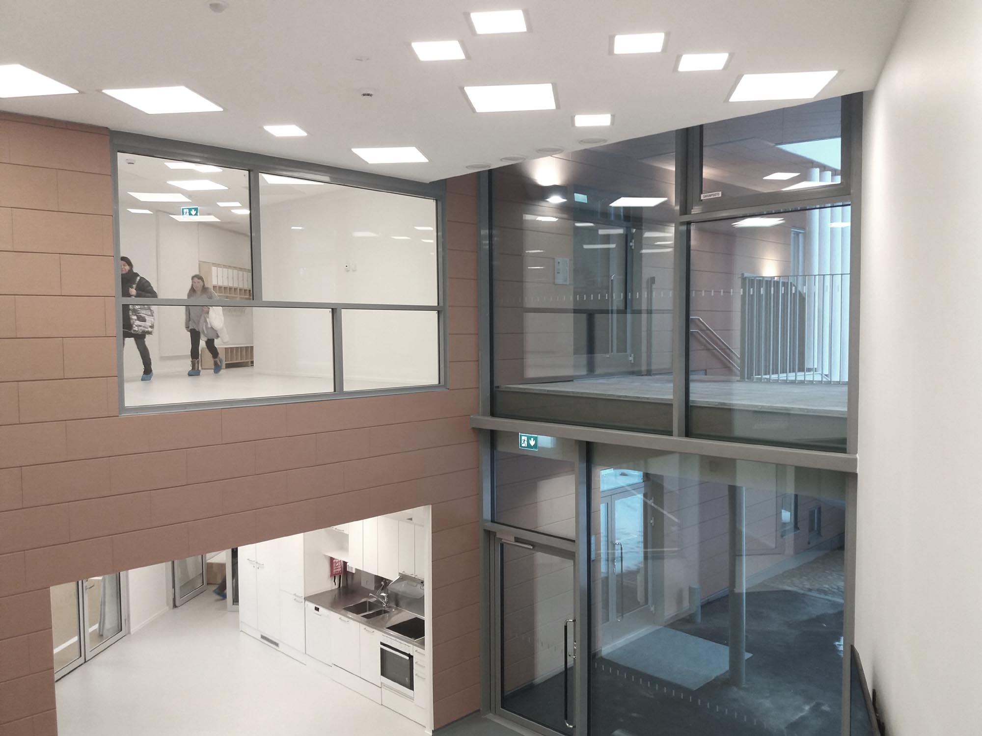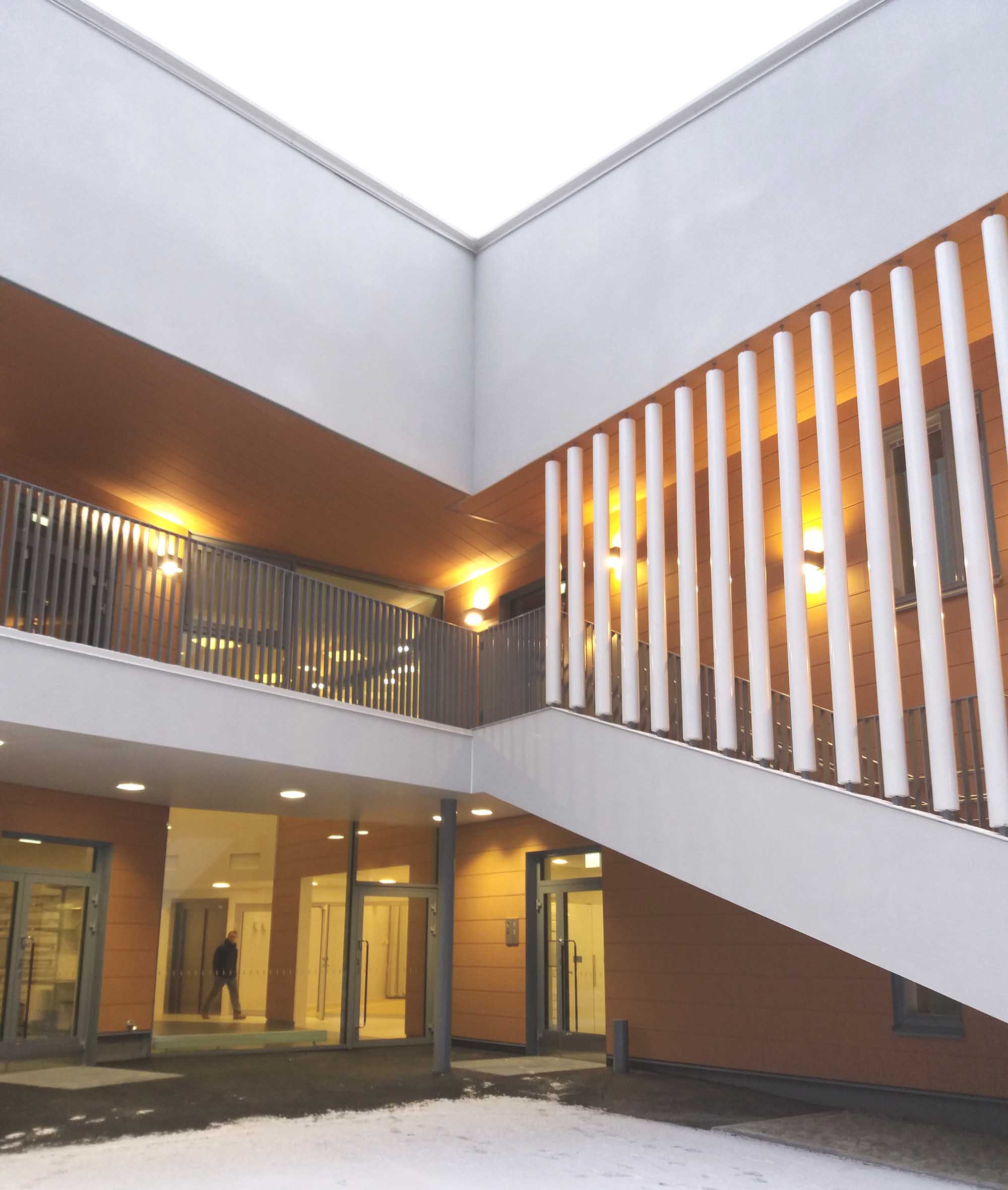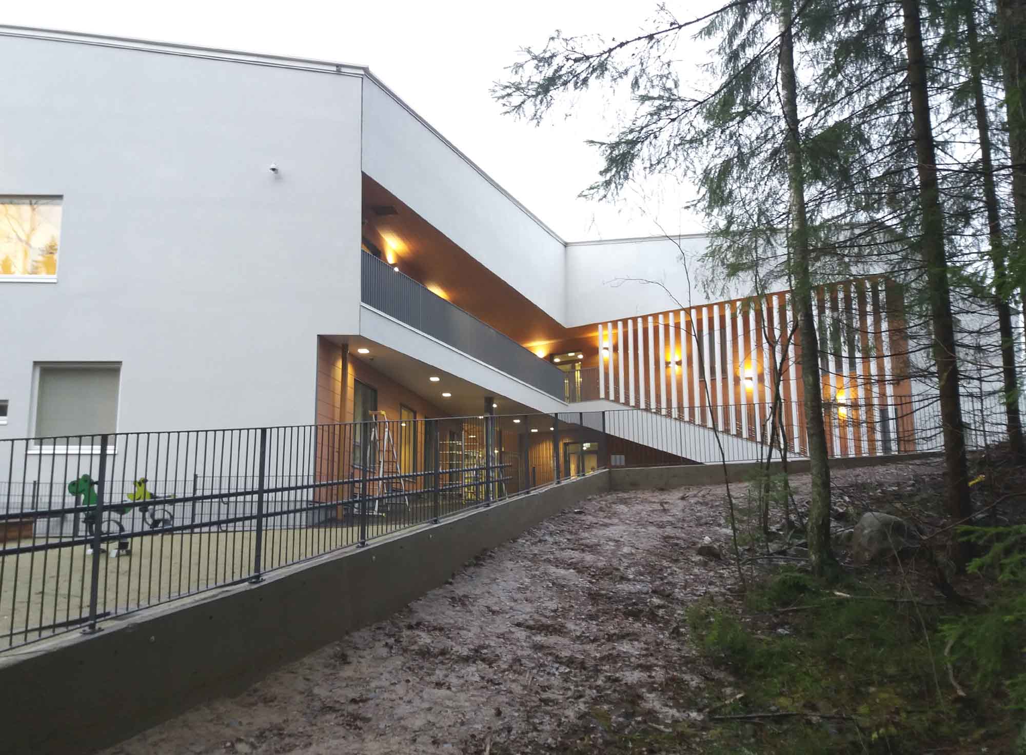 - Tilallinen ratkaisu korostaa yhteisöllisyyttä: rakennuksen keskellä sijaitseva kahden kerroksen korkuinen ruokasali on päiväkodin sydän, jonka suuntaan kaikki päiväkotiryhmien aulatilat avautuvat. Rakennus valmistui tammikuussa 2018. Pää- ja arkkitehtisuunnittelu : Sami Vikström