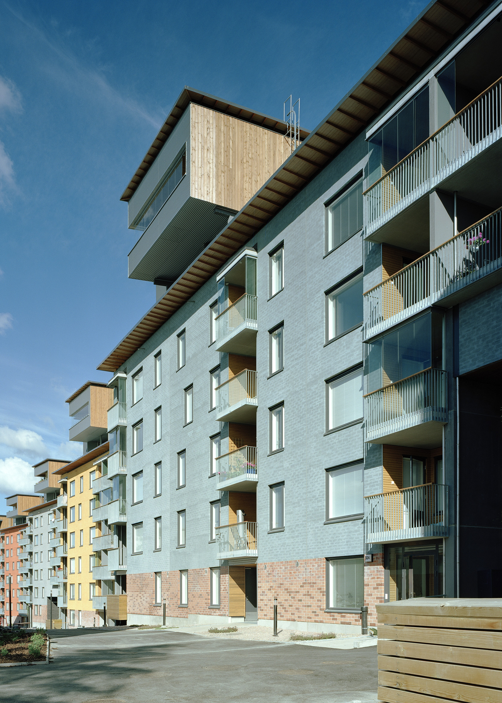 Kansainvälisen kutsukilpailun voittanut, Helsingin Viikkiin rakennettu kerrostalokohde sisältää vuokra- ja asumisoikeus- sekä vapaarahoitteisia asuntoja. Vallitsevan räystäslinjan ylle kohoavat talosaunat ja IV-konehuoneet antavat rakennuksille niiden luonteenomaisen ilmeen.