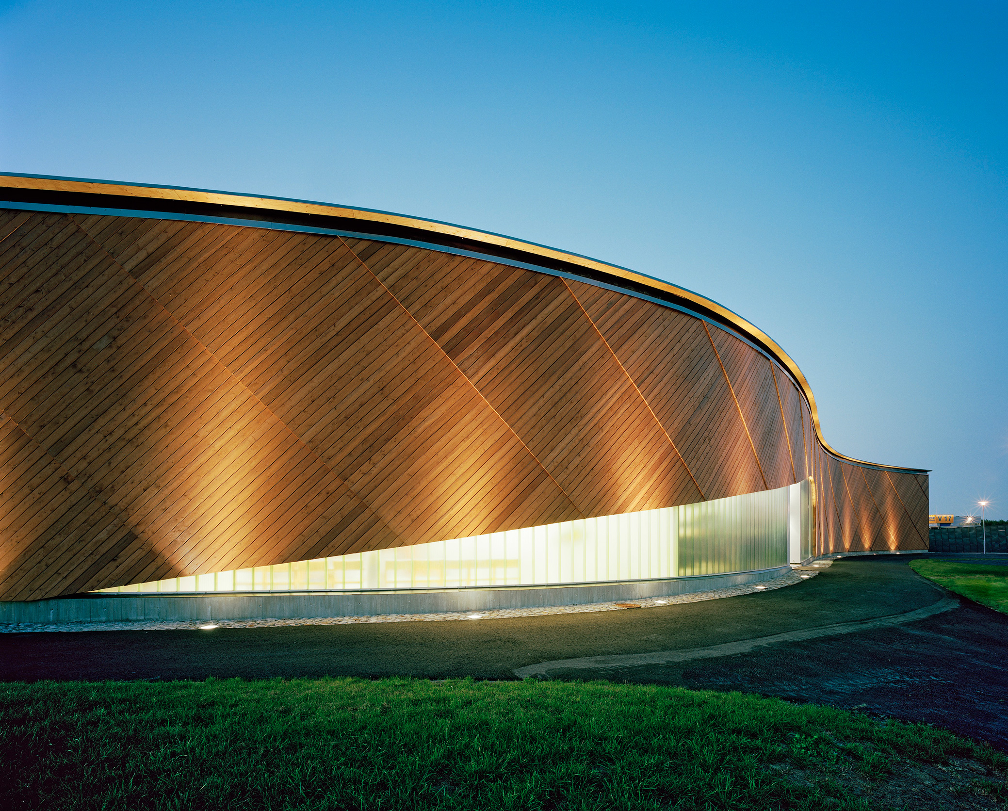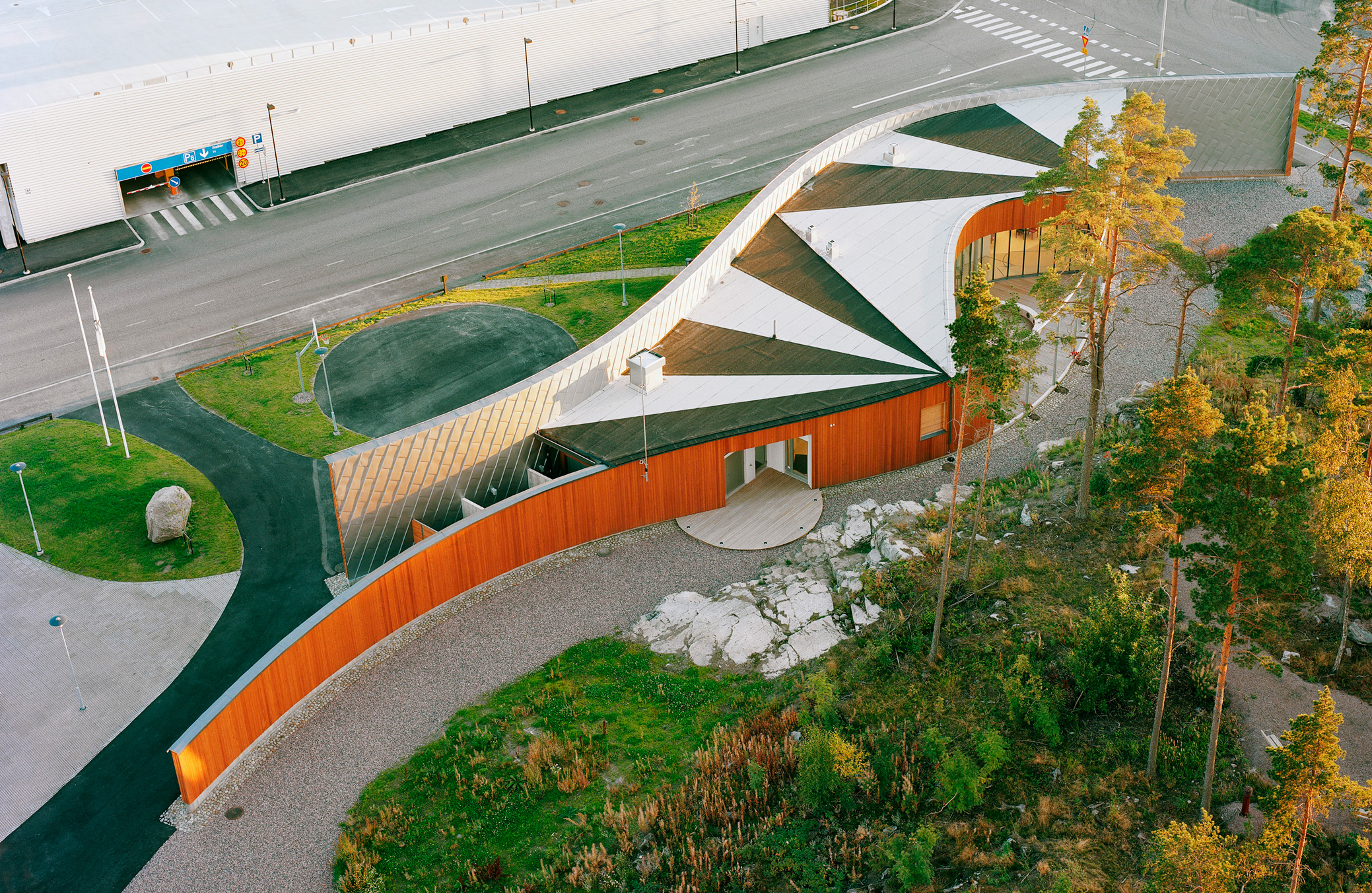 - Rakennuksen puurankarunko ja katon kertopuupalkisto on jäykistetty paikalla valetuilla betoniseinillä. Eteläjulkisivun verhouksena on vinoon limitetty, vakiopituinen höylätty ja harjattu lauta. Pohjoispuolella profiilina on pystyyn käännetty, ”norjalais-pontti” vinovuorilauta. Puuverhoukset ovat kevyesti puunsuoja-aineella sävytettyä Siperian lehtikuusta.