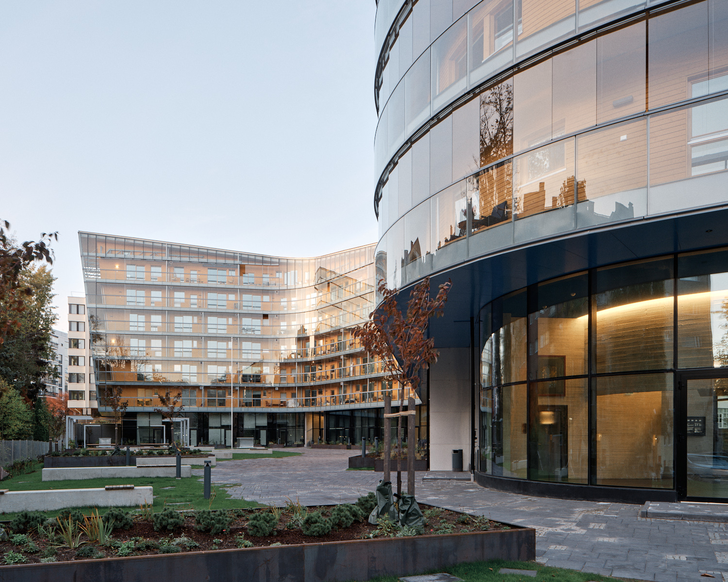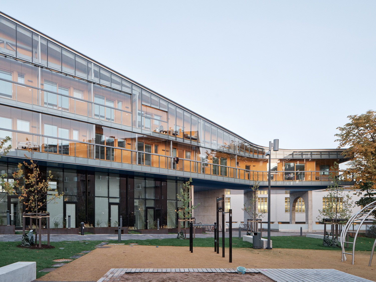 Runsaat ja monipuoliset yhteistilat, kaksikerroksiset pohjakerroksen asunnot sekä veistoksellinen, tiiviiseen korttelirakenteeseen sovitettu massoittelu tekevät rakennuksesta ainutlaatuisen kokonaisuuden